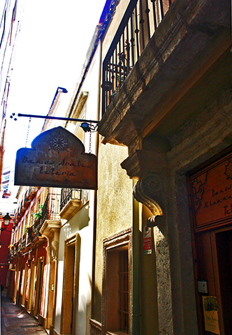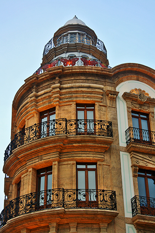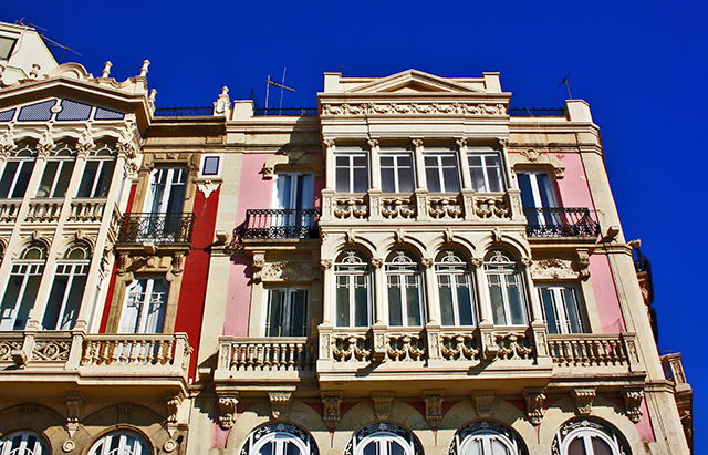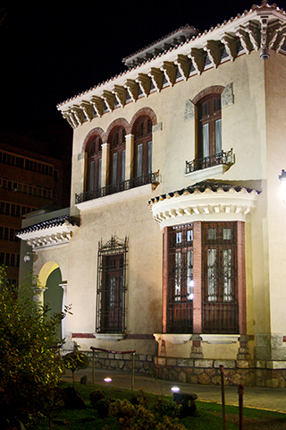 Fachada iluminada Casa Mariposas modernismo centro histórico Almería